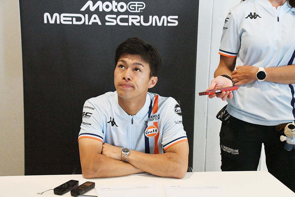 転倒を喫するもプラクティスでトップ10入りを果たす 開幕戦タイGPの金曜日は、複雑な天候となった。昼頃から雨粒が落ちてはやむ、を繰り返す。15時から行われたMotoGPクラスのプラクティスでは、雨が降っていることを知らせ